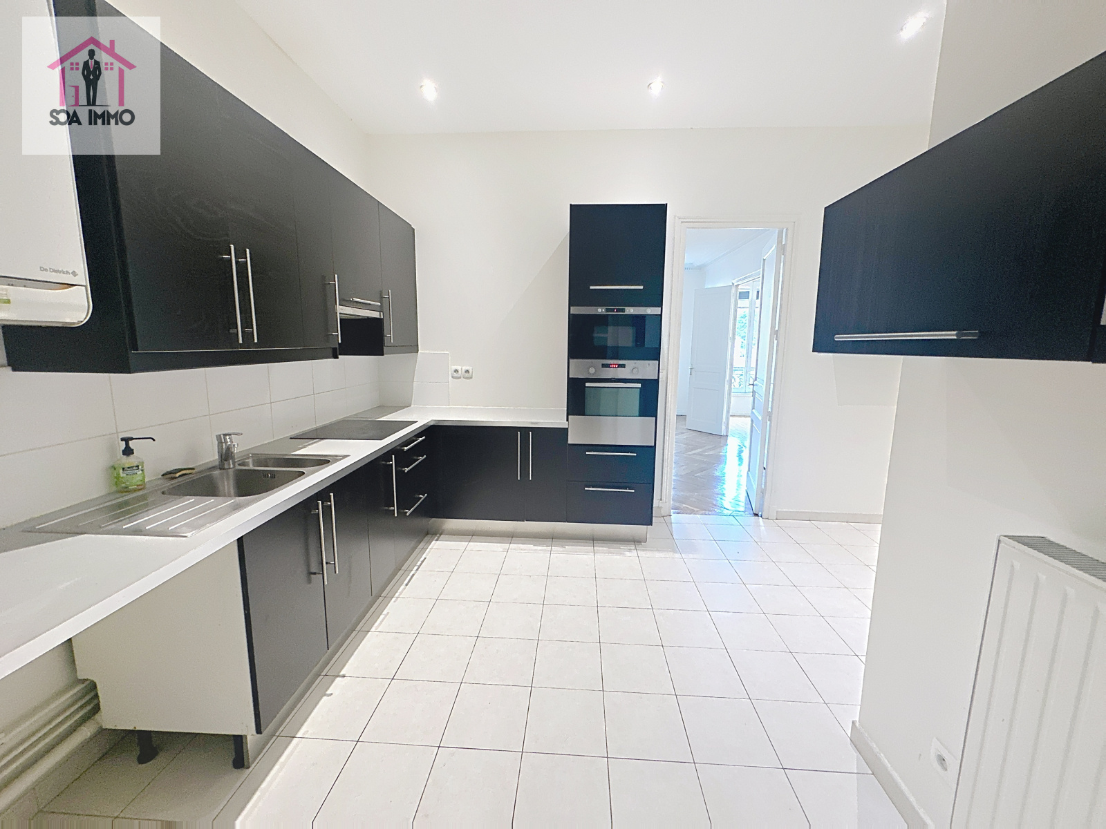 Situé au 1er étage avec ascenseur, cet appartement se compose d'un hall d'entrée, d'un séjour lumineux et spacieux avec parquet et chéminée,d'une salle à manger et d'une cuisine aménagée.